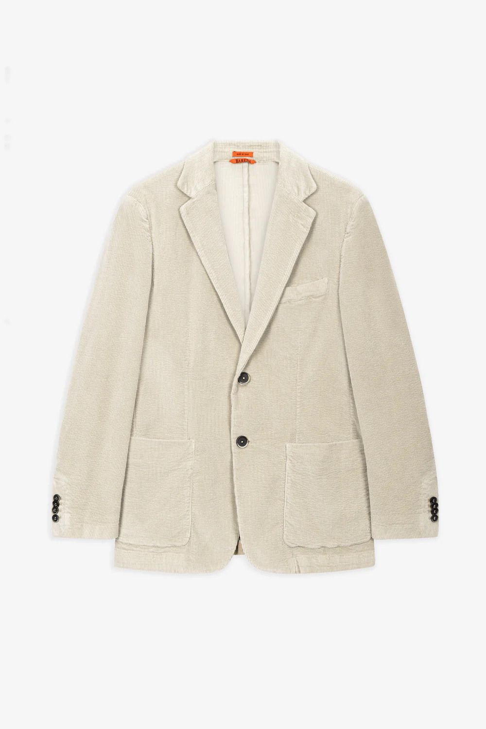 Barena's Borgo jacket is made in Italy from their Matador fabric in a light stone shade called Sasso. Cut with soft shoulders and patch pockets, this piece sits between a blazer and a jacket with no lining for comfort. The fabric has a subtle corduroy texture and the fit is roomy enough to layer over knits without pulling tight.