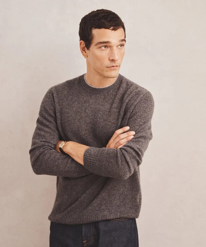 Naadam's crewneck is knit from 100% cashmere in a light gauge that works across seasons without making you sweat. The contrast trim at the collar and cuffs adds a clean edge to an otherwise simple design. At 7 gauge and single ply, the knit stays soft and airy while holding its shape through regular wear.