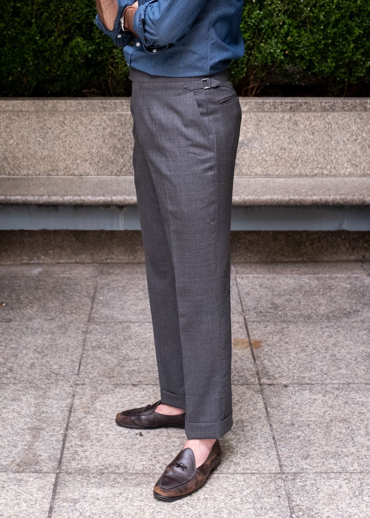True luxury in men’s summer trousers is crafted from an 8oz high-twist open-weave wool fresco fabric. Custom-made by appointment only at Allen Flusser, it’s lightweight yet structured, and it drapes nicely while allowing airflow to keep you cool. The textured weave elevates these pants beyond basic warm-weather bottoms. Styled with a flat front and slightly lower rise, they pair effortlessly with casual tees or blazers. An ideal utility pant that remains polished from morning to night.