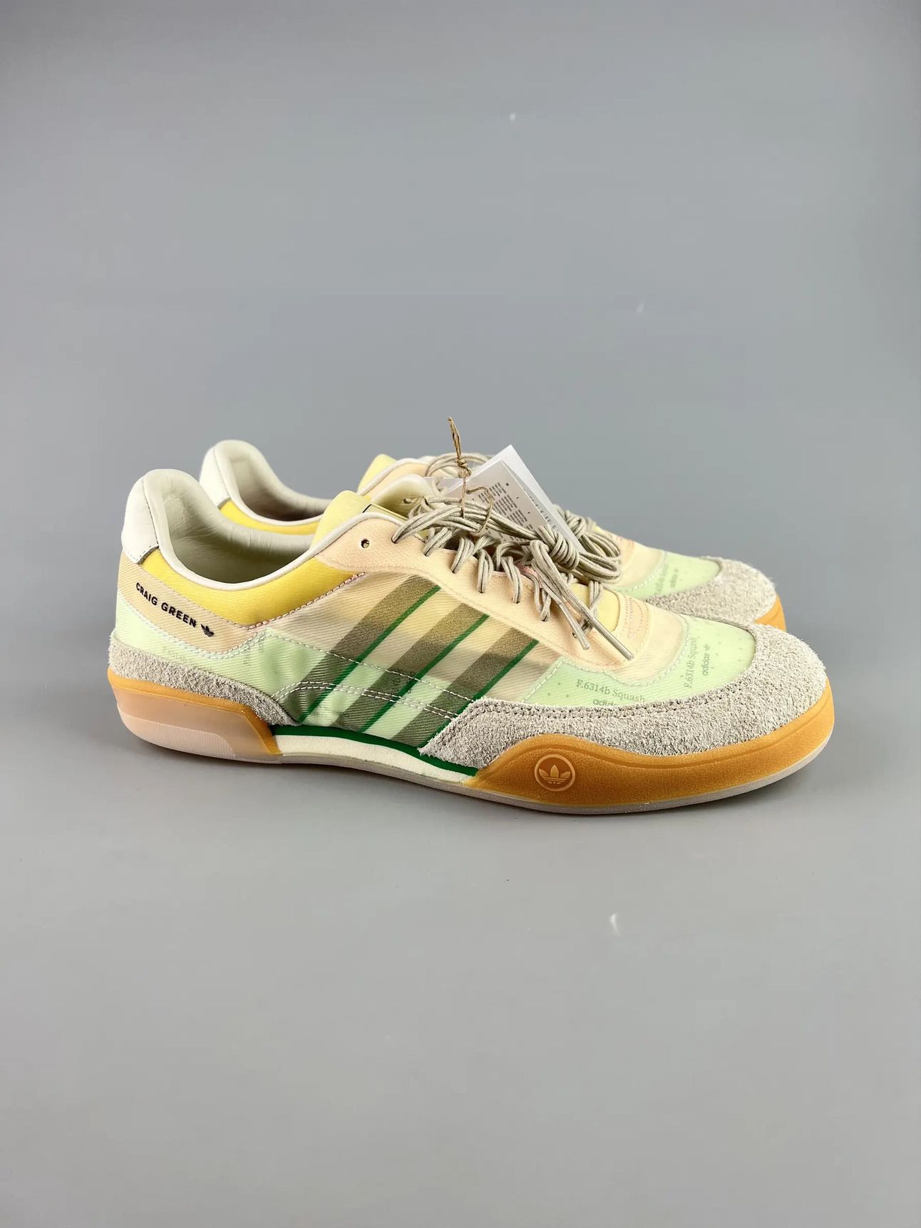 The Craig Green Squash Polka sneakers from adidas and Craig Green are a new take on the 1988 adidas SQUASH. These shoe has a transparent mesh upper that reveals inner layers, including a foam midsole and industrial colors. The design includes the iconic adidas 3-Stripes, a printed inner canvas with the original 1988 serial number, and a rough suede trim. Unique laces combine three fine laces at the tip, and branding from both Craig Green and adidas can be found on the heel collar and tongue. Delish!