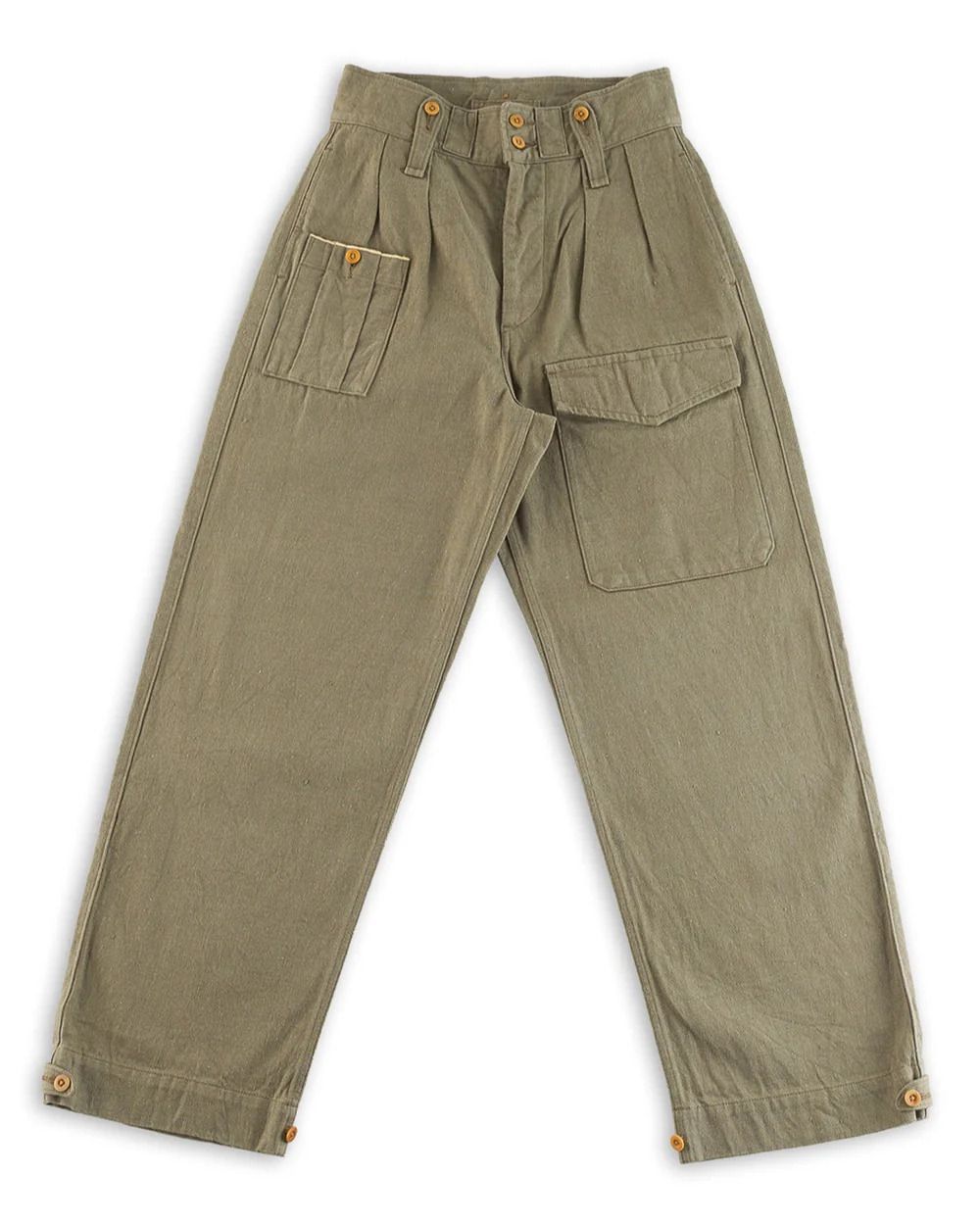 The British Army Pant in loose denim green from Nigel updates the utilitarian staple with a softened denim fabric that’s sturdy but not stiff. The loose cut gives a laid-back vibe without feeling sloppy, and the rich green color stands out without being loud. These pants pair well with boots or sneakers, perfect for streetwear or casual weekends.