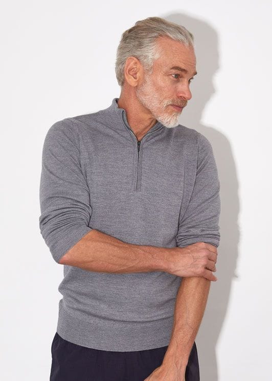 The Tapton is a medium-gauge merino wool jumper with a stand-up collar and short zip closure. Pair it with jeans and a tee for weekend wear, or layer beneath a blazer with trousers for the office. The standard fit moves through the torso without clinging, and the 24-gauge knit keeps warmth steady in cooler months. Made in England by a brand with 240 years in the craft.